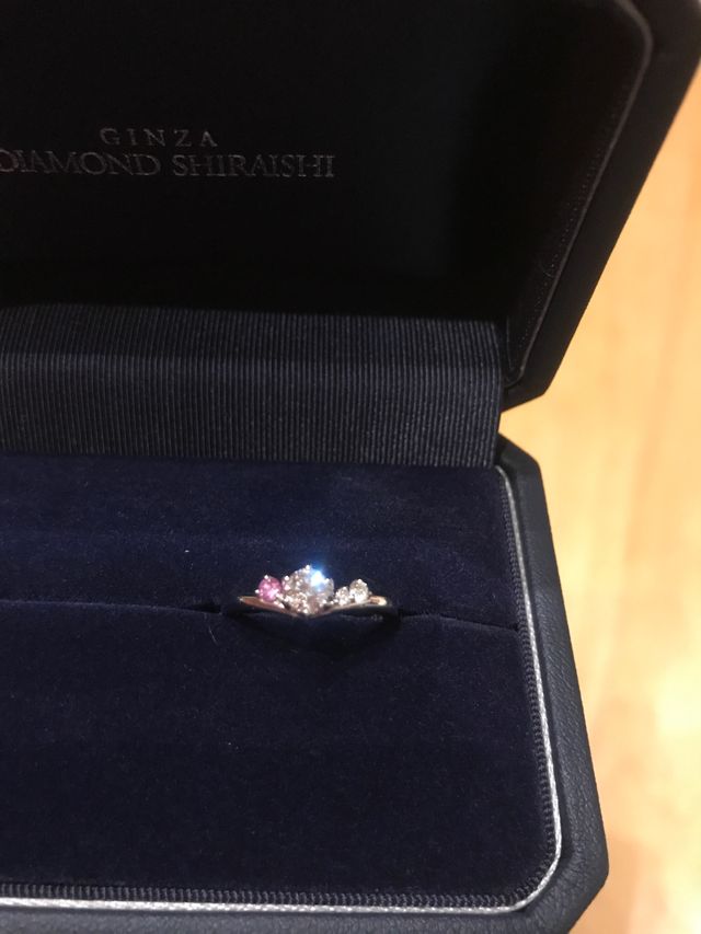 オーダーメイドできることが一番魅力的でした。わたしの好きなピンク色を入れたかったようで、かわいらしいピンク色のダイアモンドを入れてもらいました。たくさん店員さんと相談しながらデザインでき、素敵な指輪を作ることができました。