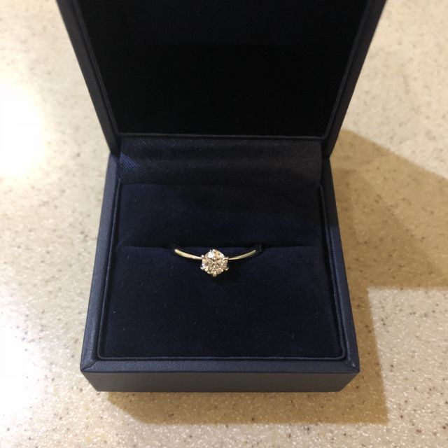 メインのダイヤは彼が選んでくれました。リングは後で私が選びました。デザインですが、普段使いができるよう、メインのダイヤの両サイドに一つずつ小さなダイヤを付けました。輝きも増して大満足です。お値段は少し上がっちゃいましたが。