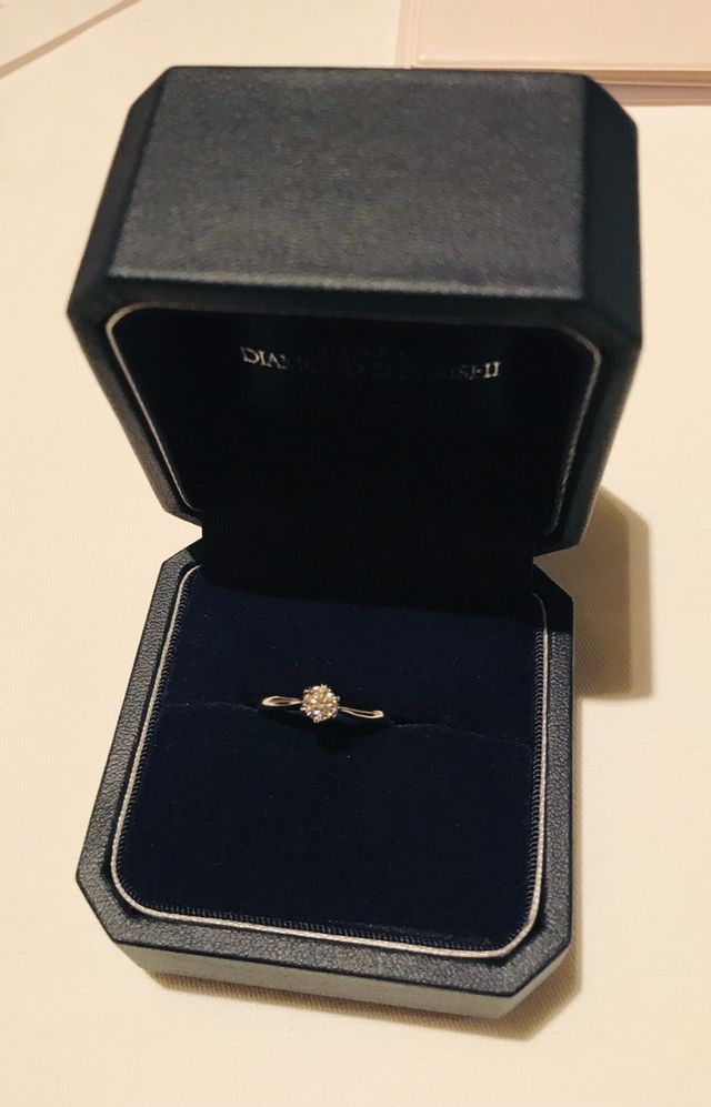 色々なタイプを見させていただきましたが、彼女はシンプルで石の少ないタイプの指輪を好むと思い、一つのダイヤのものの購入に決定。普段使いもしてほしかったので、台座が高くなくて服などにひっかかりづらいものにしました。