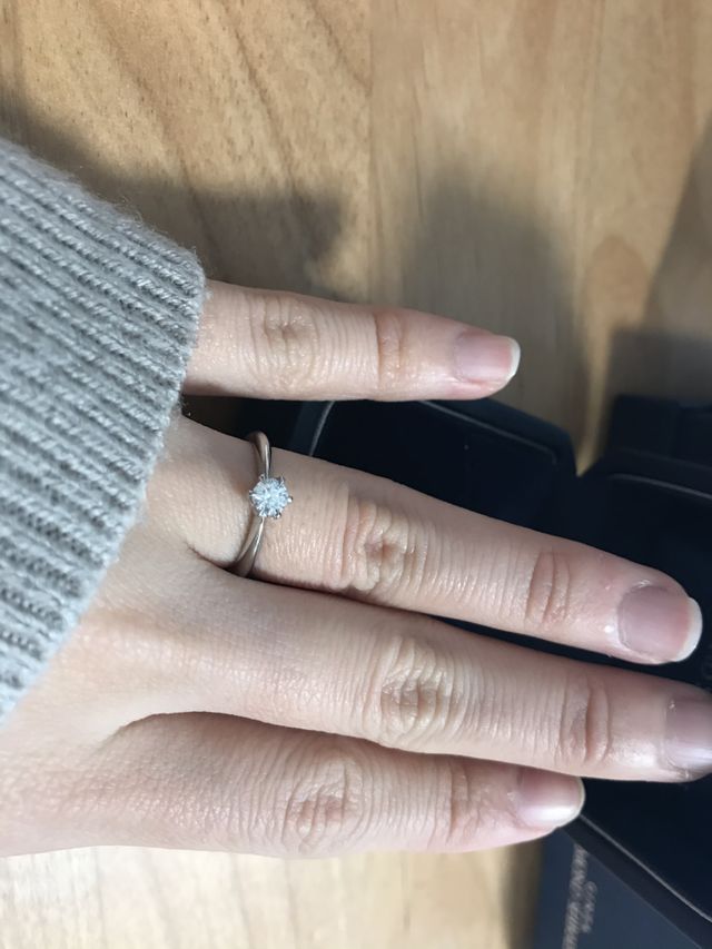 シンプルな婚約指輪を探していたため、店員さんに相談して何種類か試してみました。指輪の幅の細さで全く印象が変わるので試せてよかったです。自分の指にしっくりくる細さの指輪を選び、それからダイヤモンドを選びました。ダイヤモンドも価格と相談して選べましたが大変納得いく物を選べました。