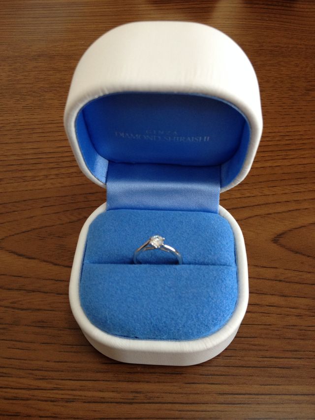 ダイヤの輝きが際立ったように見えた。爪の部分が立体的で、石を抱えるようなデザインだったのが良かったのだと思う。ネットで画像を見たときにはイマイチに思えたが、実際に見ると印象が変わった。