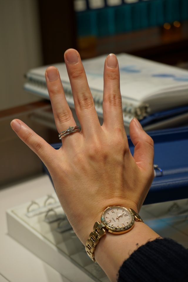 インまでいろいろとあり、迷いましたが、ダイヤモンドが映える指輪を選択しました。