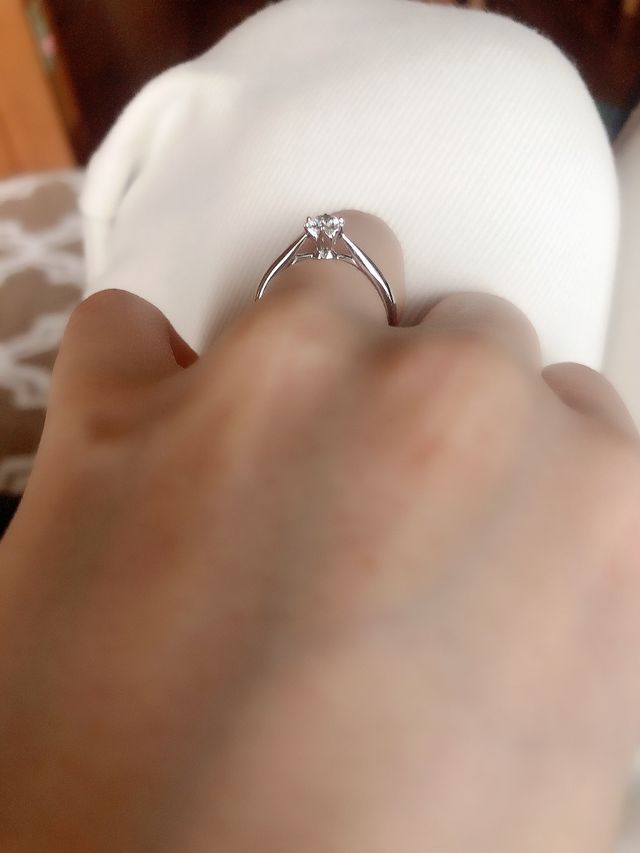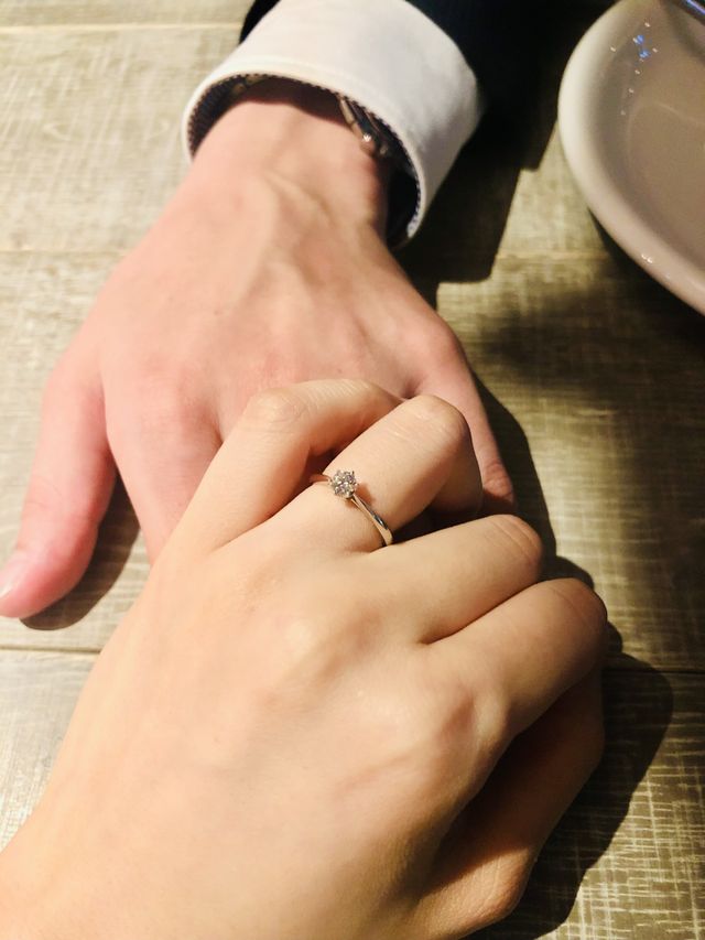 プロポーズして頂いたときに、箱が開いて一粒のダイヤがキラキラしているのを見た時は、一緒にお店を回って指輪も見ていたにも関わらず、感動して涙が出ました!