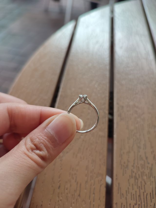 良い石を選んでもらったので活かせるようシンプルで爪がしっかりしているけれど、横からと上から見た形が気にいったものを選びました。