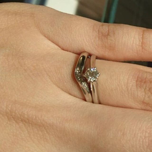 シンプルなデザインのエンゲージリングを希望しており、色々と試した結果こちらのリングに決めました。ダイヤモンドが綺麗に輝いている印象ですし、扱いやすいですね。またマリッジリングはV字でエンゲージリングとの重ね付けがスムーズになるように選びました。