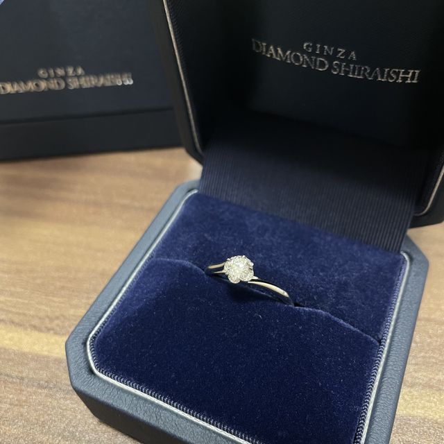 他よりも良いクオリティのダイヤモンドを求めていたそうで、素敵なダイヤモンドが付いています。光に当たると輝きがとても綺麗です。