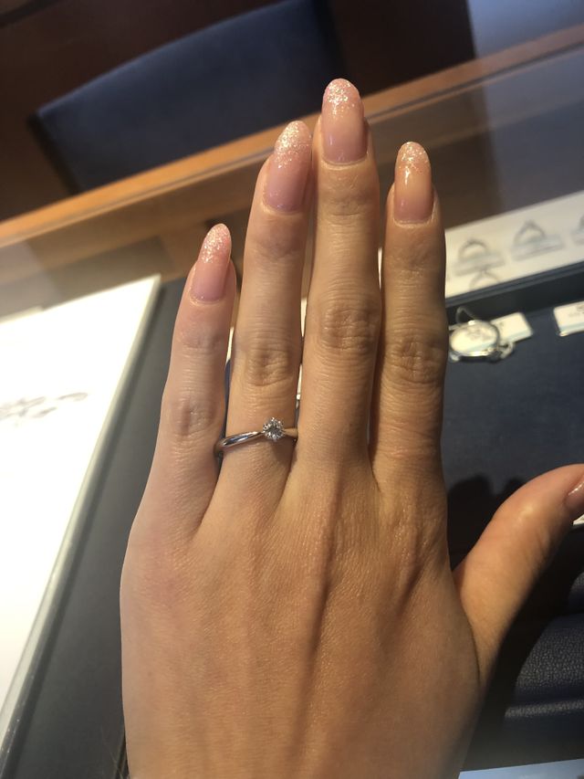 指が細めの為ダイヤを大きくすると目立ってしまうため、小ぶりなものを選びました(コスパ最高)