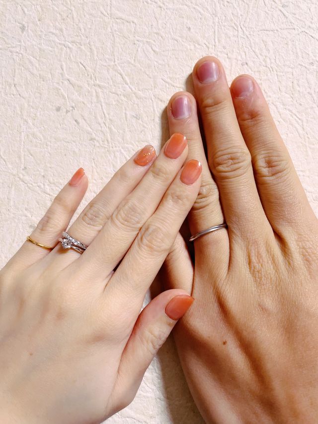 夫も太めのリングを探していましたが、初めに試着したセットの細めのリングが気に入り、試着してみないと分からないものだなぁと痛感。目利きが素晴らしいです。