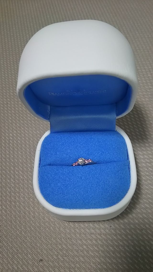 ダイヤモンドの品質が素晴らしかったこと、デザインが素敵だったこと、オリジナルでピンクサファイアを周りにつけてもらえたことが決め手です。