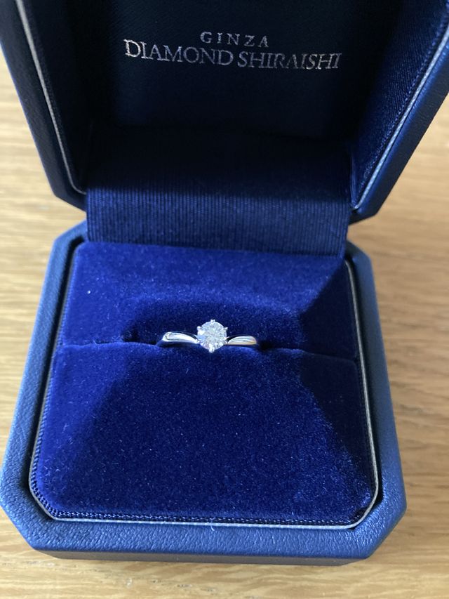 店員さんの提案で、本来検討していなかったv字ラインの形を試着したところ、指もダイヤモンドも綺麗に見えて即決でした。