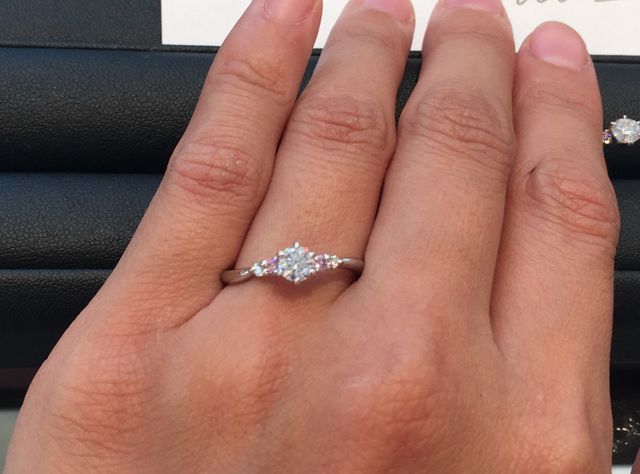その中でも中心のダイヤの両脇にピンクダイヤモンドがついた指輪がとても気に入り、試着をしました。