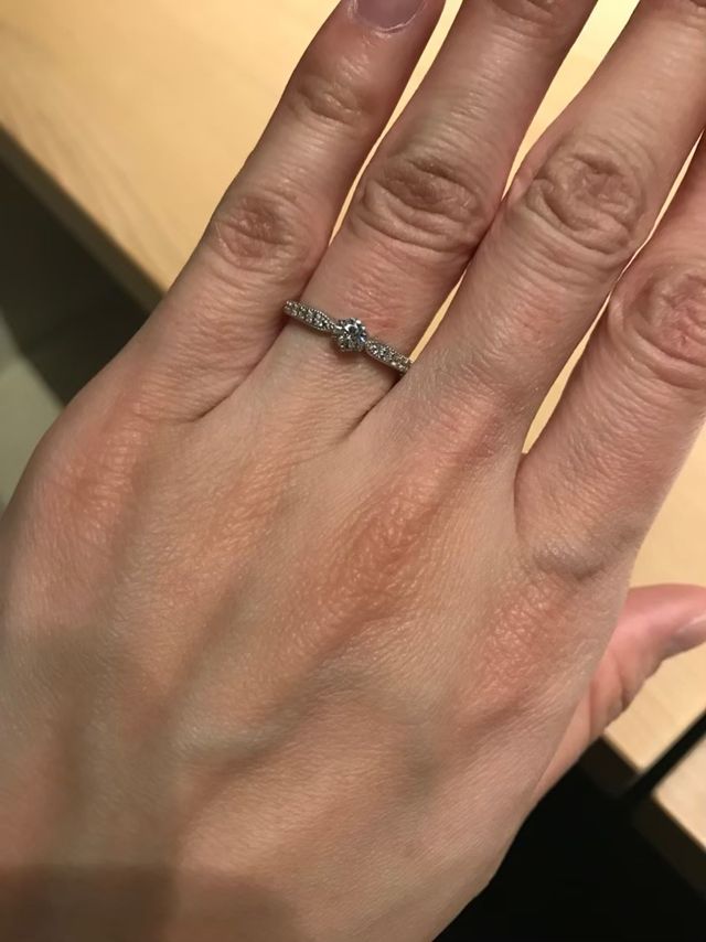 可愛らしい指輪にしたかったので、キラキラしているこの指輪にしました。ダイヤはあまり大きすぎると邪魔になると思ったので比較的小ぶりのが良いと思っていました。ですが豪華に見える指輪が良いと思っていました。