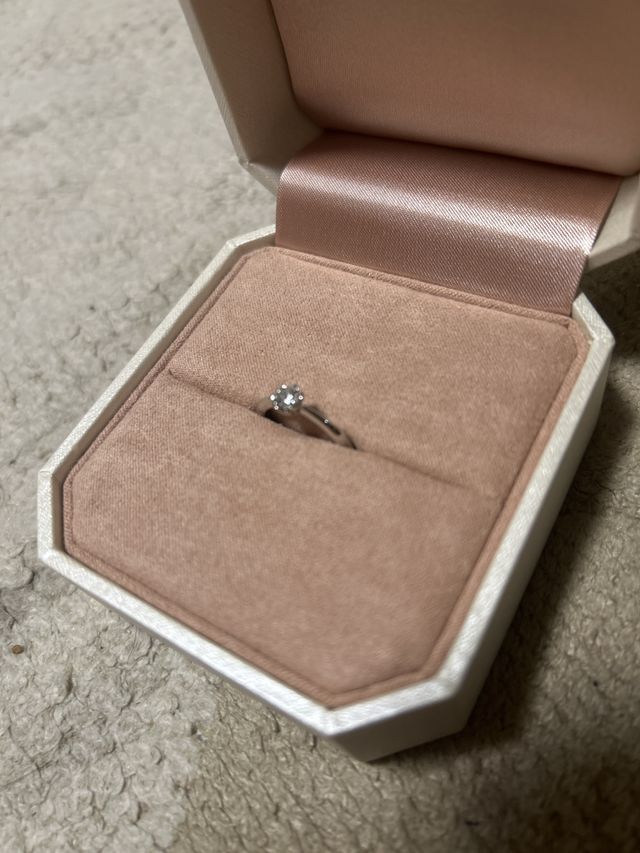 指輪デザインはお花の形のものが良かったのでそれを購入した お花の形にすることでダイヤがより大きく見えるためおすすめ ダイヤの選び方などを詳しく教えてもらったのでオススメのものを購入しました。リングの部分もスルッと入って気持ちいい感じです。