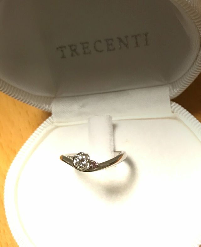 何店舗も指輪を見てまわっていたので、正直疲れていました…。婚約指輪を贈ってもらえるのはうれしいけれど、どの店舗にも同じようなものが並んでいて「これでいっかな」という気分で買いに戻る途中にふらーっと立ち寄ったTRECENTI。探していたピンクダイヤが!(しかも色が選べる)!!探していた他にはないデザイン!(花びらに包まれているようなダイヤモンド)!!