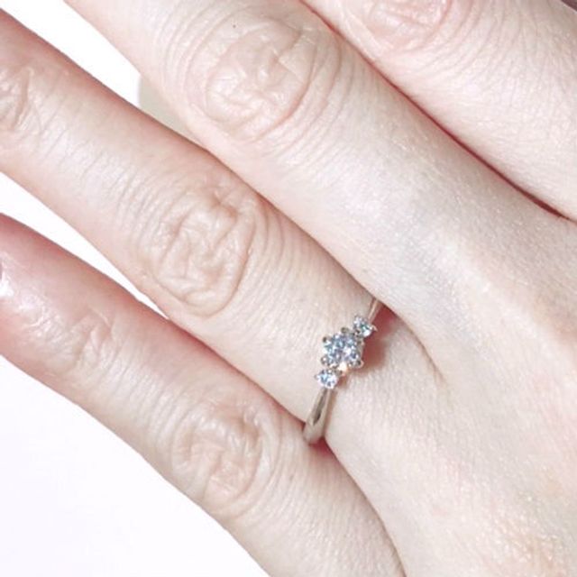 基本的に付け心地を重視しました。この指輪は自然と指にフィットする感じであったのが決め手です。ラインはシンプルですが、指の形にぴったりですし、ダイヤモンドのカッティングはきれいで輝きが良いと思います。小さなダイヤもしっかりと存在感がありますね。