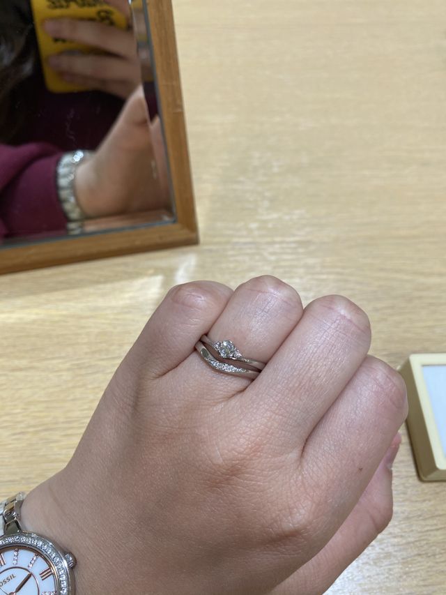 結婚指輪と婚約指輪を何点か試着させてもらいました。