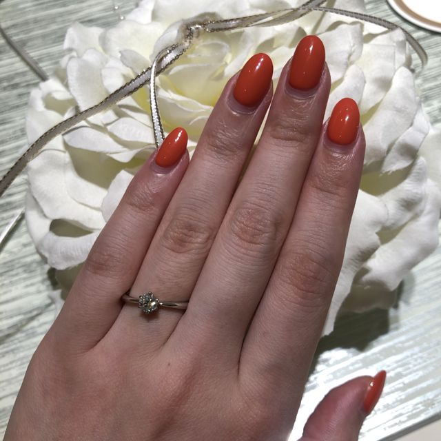 ダイヤモンドへの拘りが強い私たちでしたが、ひとつひとつの拘りに答えてくれる、とても強い輝きを放つ石でした。品質は素晴らしいです。また台のデザインも女性の薬指を美しく見せるデザインになっており、石自体も指も綺麗に見せてくれる指輪です。