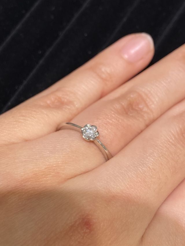 フローラの花の形のデザインが可愛かったです。ずっと使用していきたいと思っているので、長時間つけていても大丈夫なところがとても良かったです。石の段差が低いので、結婚指輪感が強くなく、カジュアルにつけられて色々な場面で使用できると思いました。
