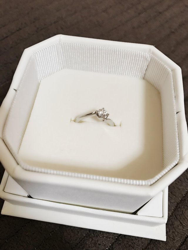 主人が選んできてくれた指輪です。シンプルで普段使いができるようなデザインがよかったのでこちらの指輪はぴったりでした。内側にはイニシャルとブルーダイヤモ