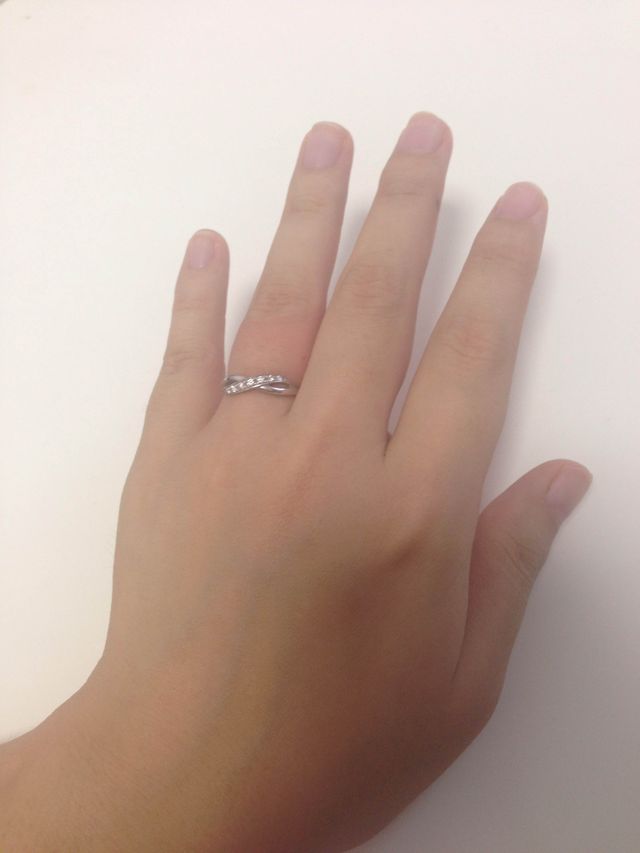 結婚指輪との重ね付けは想定していませんでしたので、1本だけで十分に見栄えがするところが嬉しいです。