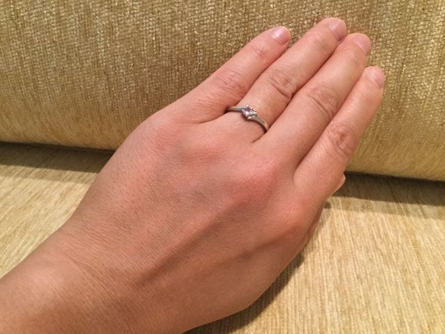 元々婚約指輪は購入予定はなかったのですが、形だけでも買ってあげたいと主人に言ってもらい、日常でつけていてもおかしくないデザイン且つお手頃なものを探していました。