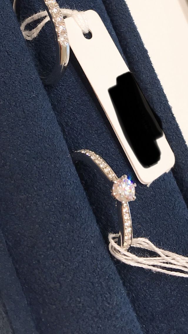 ハーフエタニティのエンゲージリングです。華奢なデザインで可愛かったです。リングの幅は少し細めでした。