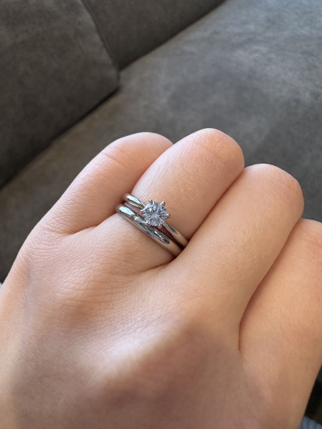 結婚指輪と重ね付けした時の印象も見たいとお願いすると、わたしが持っている結婚指輪と同じようなデザインの指輪と重ね付けさせていただけました。丁寧に説明していただに、十分に納得した上で購入することができました。駐車場も広くて停めやすかったです。