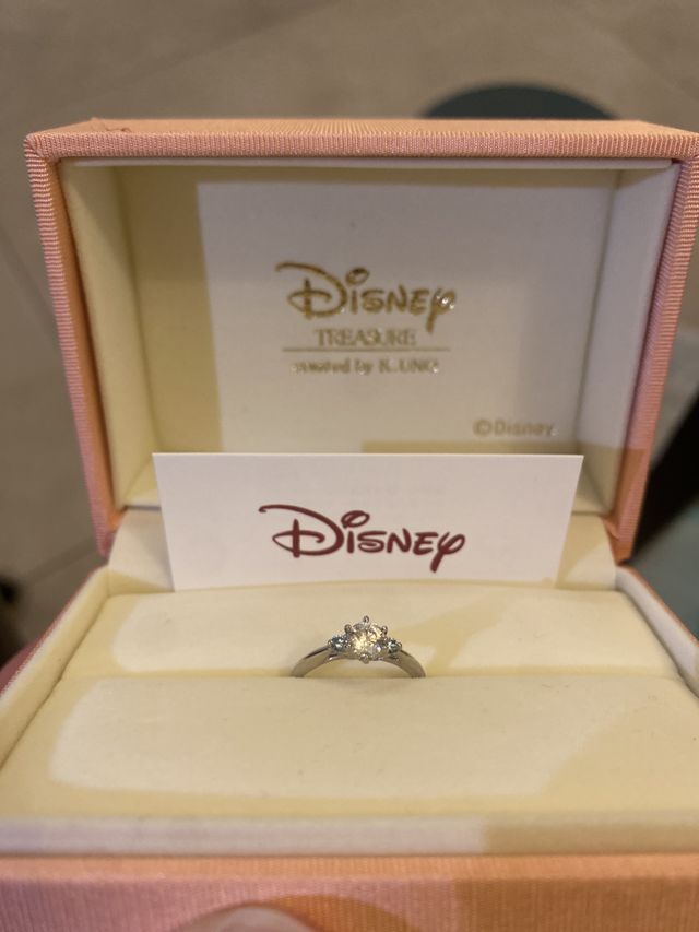 指輪のデザインはケイウノさんのデザインがすごく良かったので、ディズニーモチーフリングではなくケイウノオリジナルリングにしました。