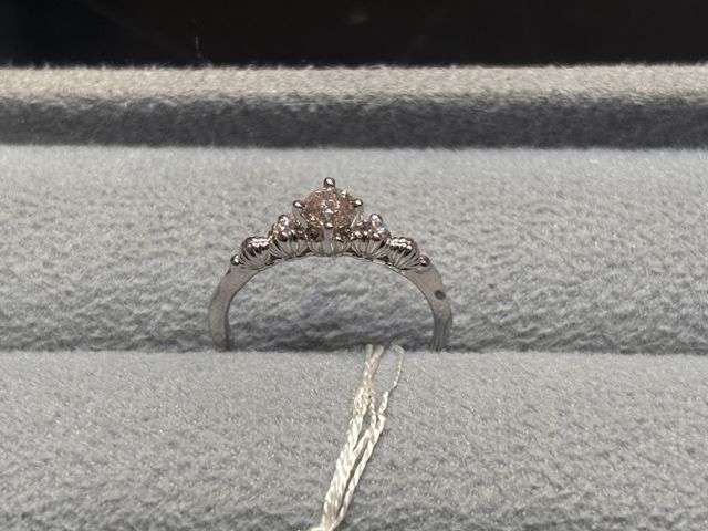 中央に大きなダイヤモンドが一つだが、左右の作りが石が無くてもキラキラ光って見えて石が3つついているように見えて豪華