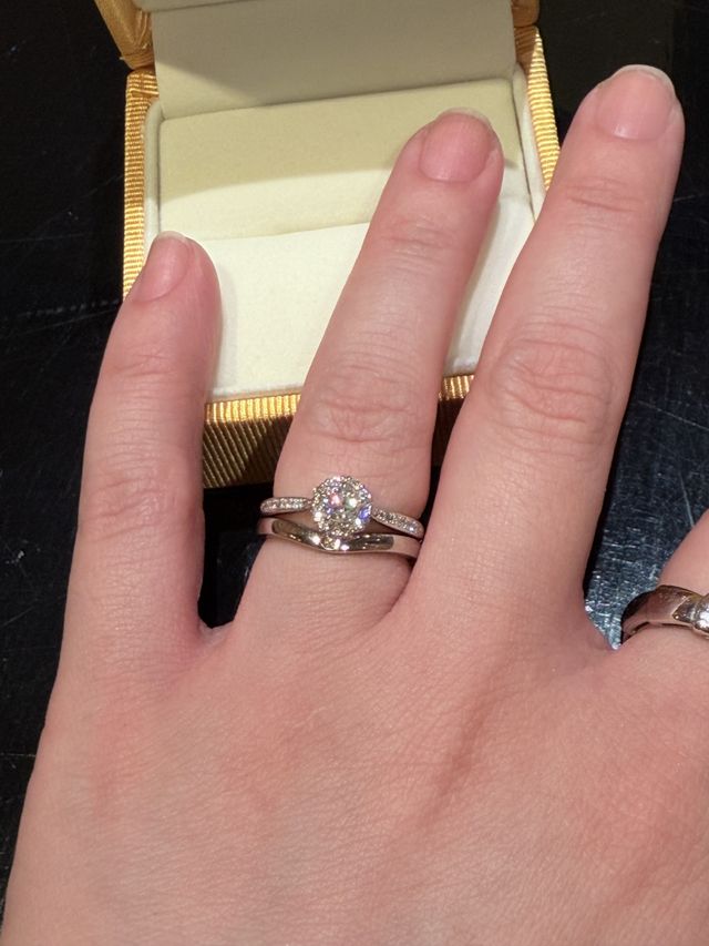 私の指にはサイズが合わず、またデザインも好みで無かったので、友人のおすすめでケイウノさんで婚約指輪にリメイクして頂きました。