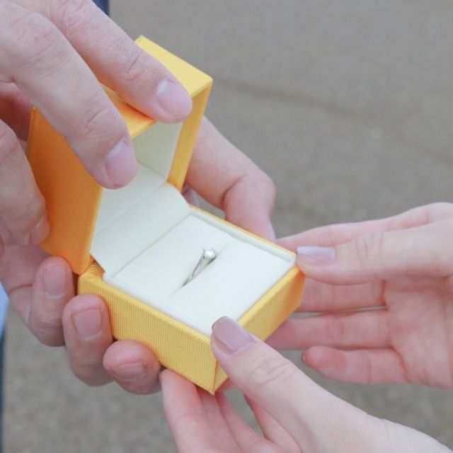 持ち込みダイヤにて、デザインを提案していただきました。職業柄仕事中は婚約指輪はつけられないですが、シンプルで普段のお出かけ等でもつけやすいです。重ね付けしても派手にならず、とっても可愛くて気に入っています。
