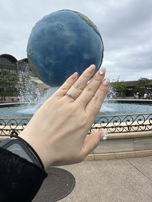 最初はオーダーメイドで作る予定ではありませんでしたが、デザイナーのかたが、スラスラと言葉にしたことをデザインを描いてくれて、ダイヤを支える部分をミッキーとミニーにしてもらいました。よくよく見ないと分かりませんが自分とパートナーだけが知る隠れミッキーがあってつけるとワクワクする 気分にもなれます。指につけても、飾っても可愛いし、楽しめます。