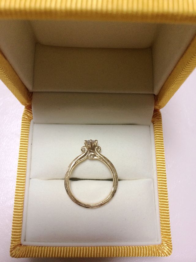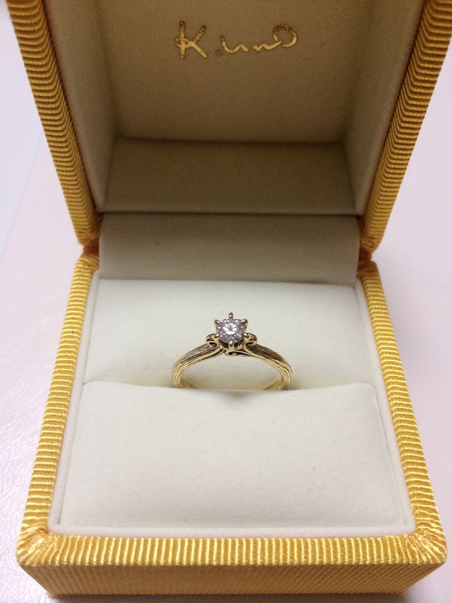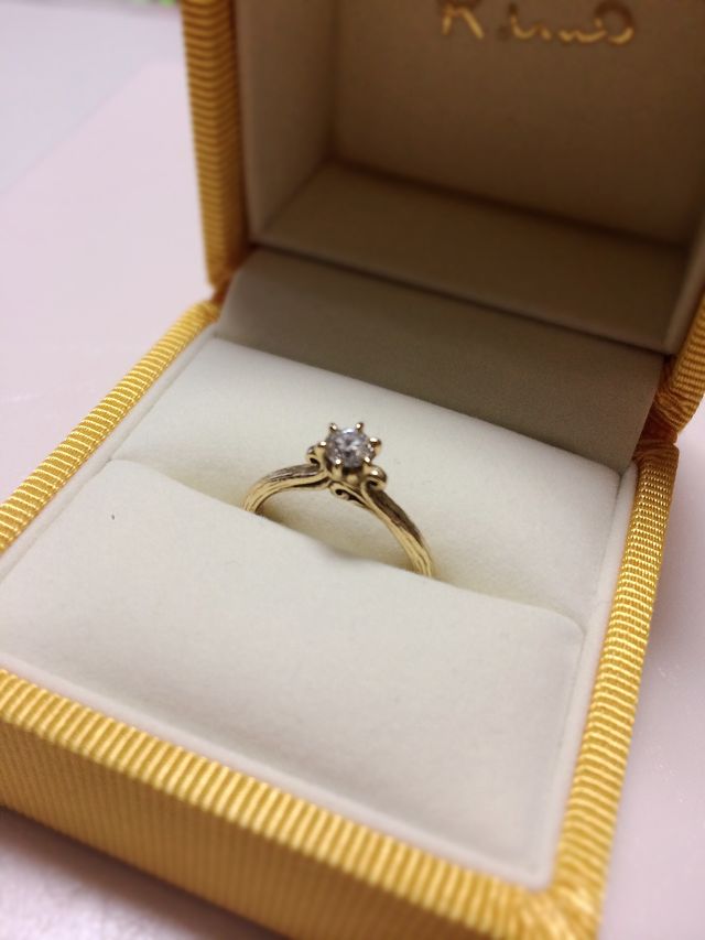 他ブランドでは見たことのない,樹木をイメージしたデザインに一目惚れしました。指輪が植物の蔦のように加工されていて,台座部分もつるが巻いてあるようなデザインになっていて個性的です。色はシルバーやピンクゴールドなども選べましたが,デザインが1番映えると感じたイエローゴールドがしっくりきました。