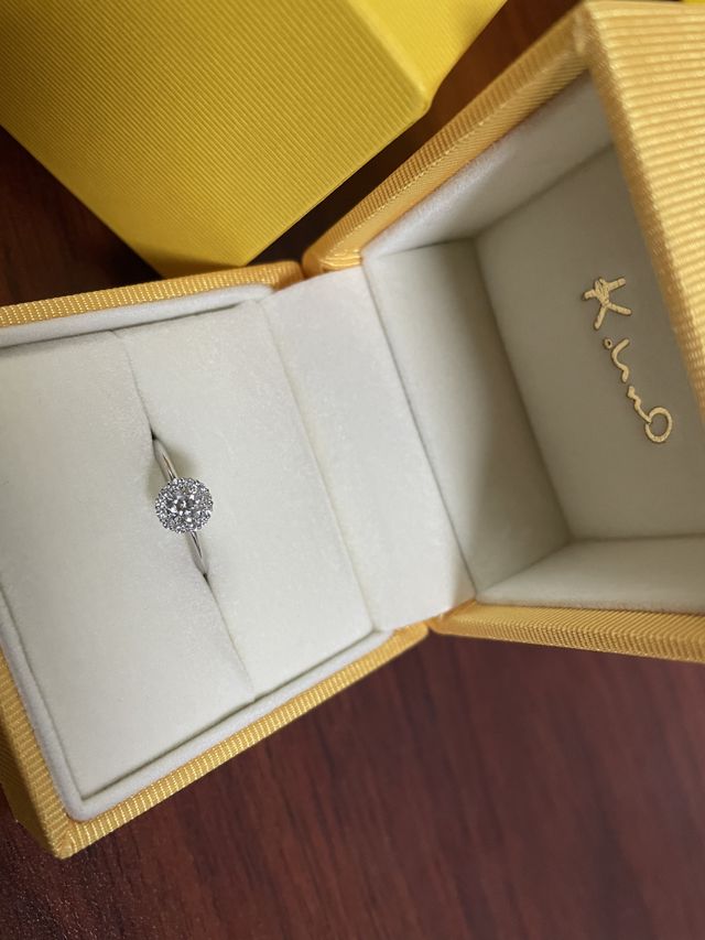 多くのリングの中から、ケイウノブライダルにしかない「クララステラ」カットのダイヤモンドに惹かれて、これが欲しい!と一目惚れし、購入を決めました。ダイヤはもちろんのこと、リングの内側にも大切な思い出を刻むことができることも決めてです。