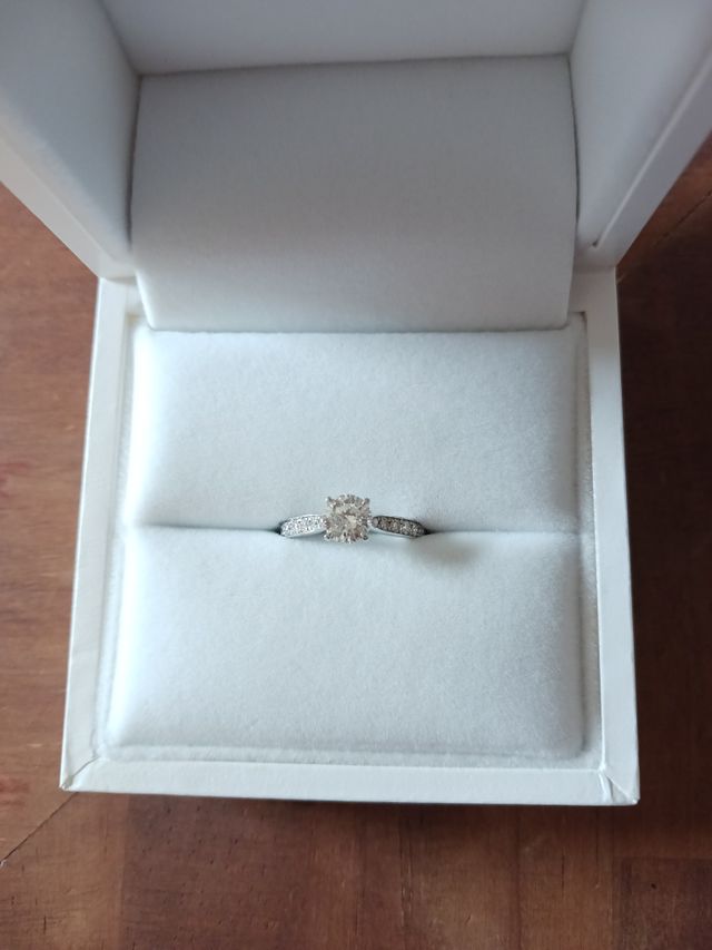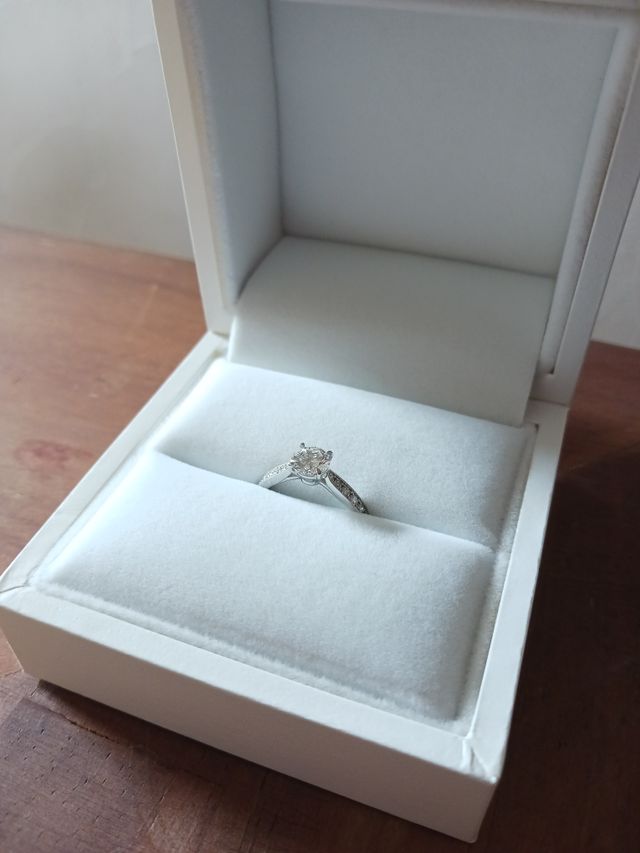 持ち込みのダイヤモンドを使用していただいたのですが、それに合わせて、リング部分を選びました。こちらの提示するイメージに合うデザインを提案していただき、どれも素敵なデザインばかりでした。どの方でも、イメージに合うデザインがどれかに当てはまるというようなブランドだと感じます。