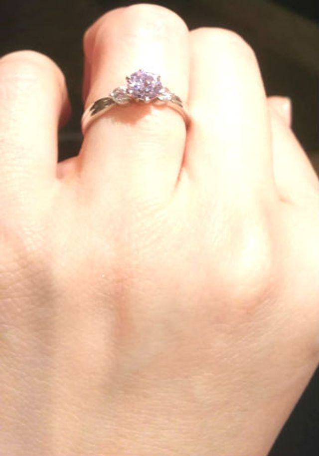 とてもきらびやかなデザインであり、中央のダイヤモンドの輝きが際立ったリングです。多少派手目かなと思いましたが、この先もずっと着けていくので華やかでも構わないかなと決めました。大きなダイヤの周りには小さなダイヤがあり、それも綺麗です。