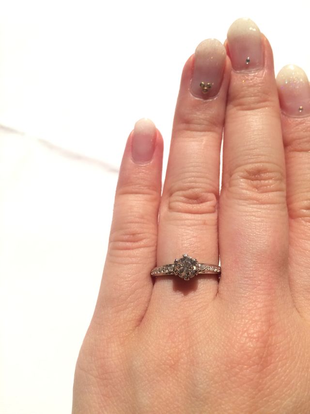 元々、年齢からしても華やかさがありラグジュアリーなものを、と思っていました。最終的にデザインは夫が選んだものです。このリングはダイヤを留める爪がハート型になっており、華やかさの中に可愛らしさがあったのが決め手になったようです。また、なかなか珍しいデザインだと思い、周りと被らない感じがよかったです。