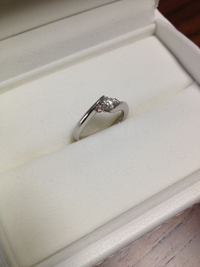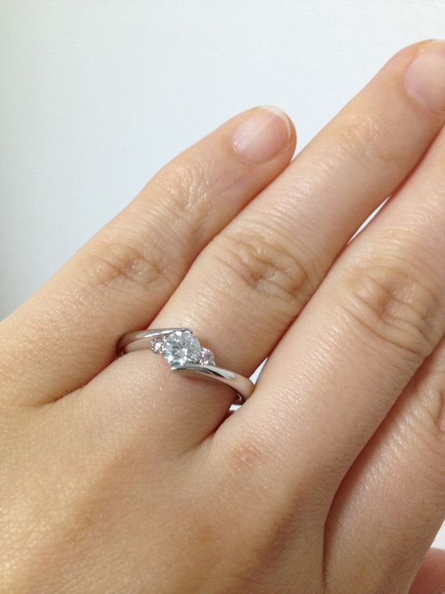 メレにうっすらとしたピンクダイヤを選んだので、少しかわいい印象になったところも気にいっています。結婚指輪と重ね付けもしやすいです。