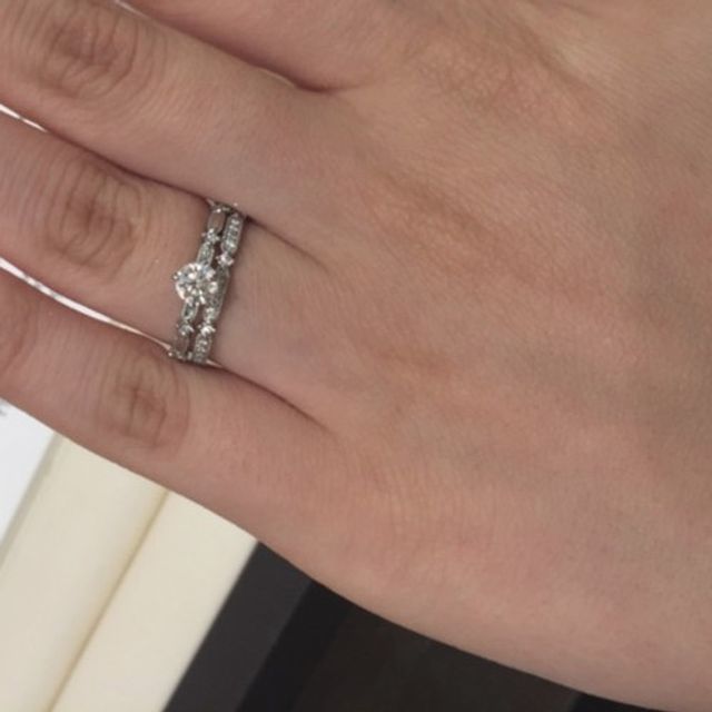 センターのダイヤはそのままですが、サイドの部分は多少アレンジしており、もとのデザインのリングよりも華やかさが増しています。センターのダイヤは非常に大きく綺麗で存在感が十分にありますし、リングは滑らかでつけ心地が良いです。