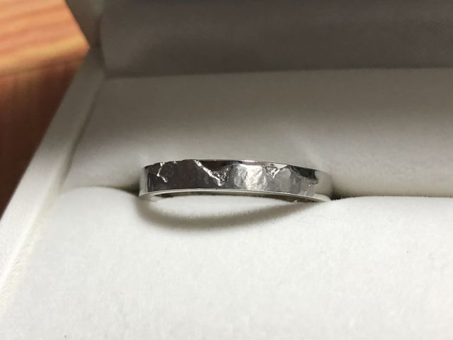 既製品ではない指輪が欲しくて、山をモチーフにした指輪に惹かれました。登山が共通の趣味なので、すぐに決まりました。指輪の材質、表面の仕上げなど自分たちの希望を聞いてもらいながら、納得のゆく指輪に仕上げていただきました。