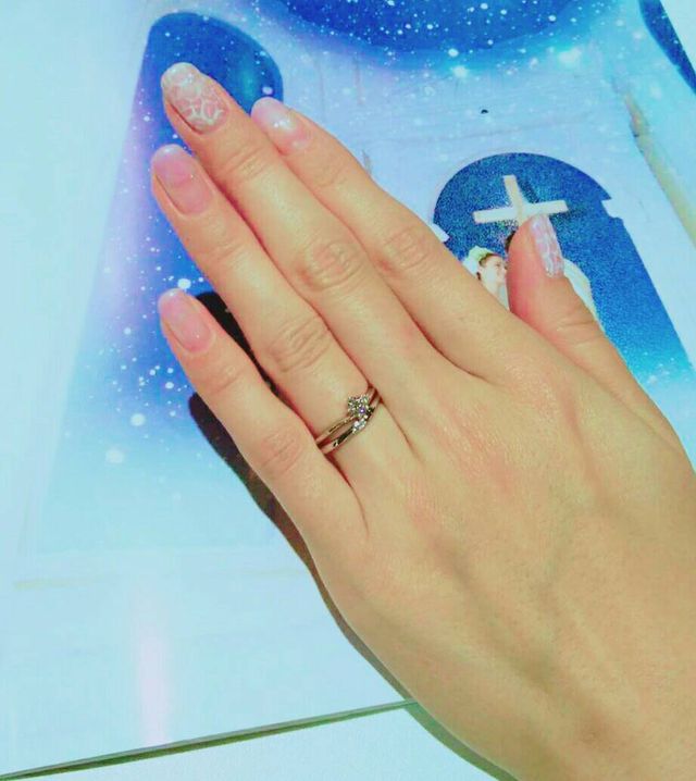 最終的にシリウスとアリアの二択で迷っていましたが、普段からの重ね付けをしたくて、マリッジリングがシンプルめなシリウスを選びました。シンプルといえど、ダイヤが一粒ついてるのとエンゲージリングの大きなダイヤは重ね付けすると十分な輝きでした。