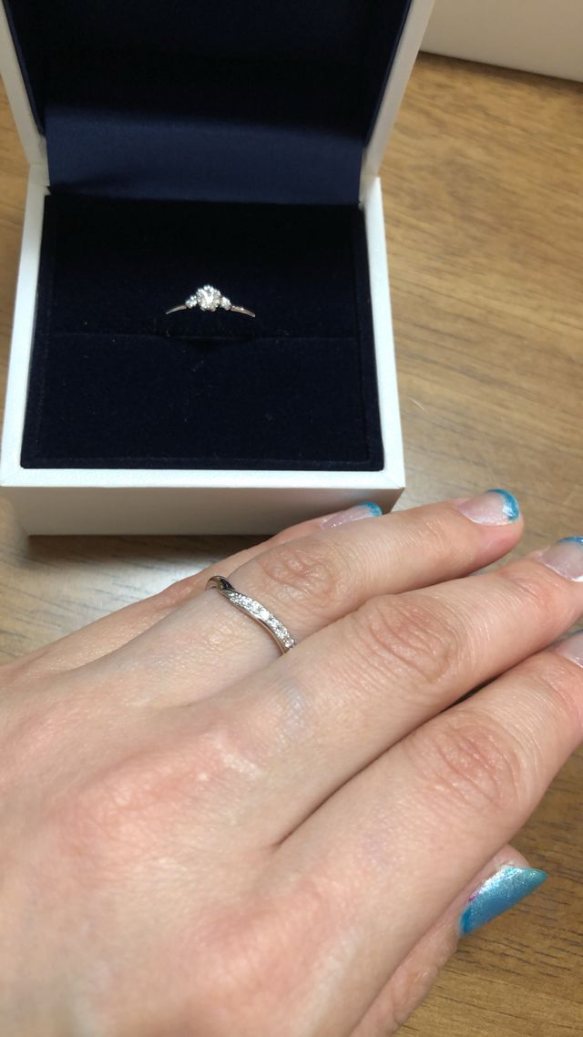 指輪を試着した時はとても指にフィットしたし、指が綺麗に見えたのも決め手でした!!!!!!!!