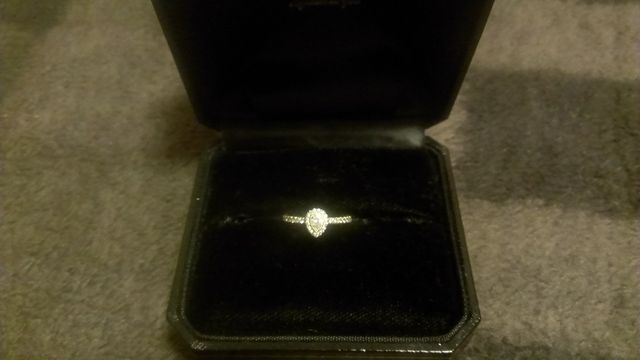 エタニティの要素とセンターのダイヤ周りのミル打ちのバランスがとても良かった。センターのモチーフが円形のものと悩みましたが、同時購入の結婚指輪(SIENA 二人)と重ね付けした時にしずく形のダイヤの一部が重なるのがとてもきれいでこちらに決めました。