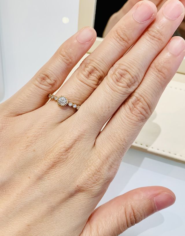 また、ピンクゴールドの色味が肌馴染みがよく、普段使い、おしゃれつかいできる指輪だと思います。