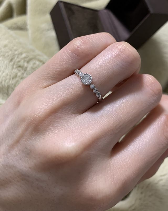 少し高いなと値段で悩みましたがダイヤモンドのカットを小さくし、カラーの質を少し下げて安くして頂けたので即決でした。