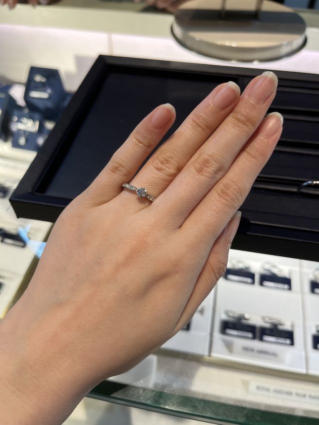 スタッフの方にブライダルリング全体に共通するダイヤモンドの4Cについてから、ロイヤルアッシャーのブランドについてまで、ご丁寧にご説明していただき、魅力が伝わってきました。