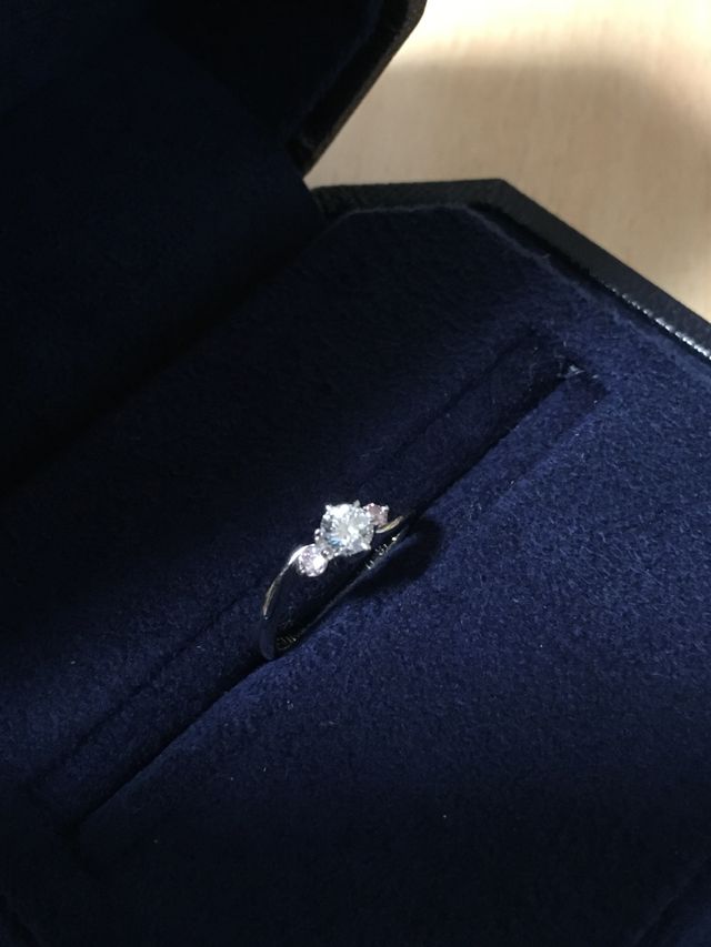主人がプロポーズの時に贈ってくれたものです。ダイヤモンドの両側のピンクダイヤがとても可愛いくて気に入ってます。それでいて上品なデザインなので、年齢を重ねても着けやすいと思います。お出かけの時には必ず付けています。
