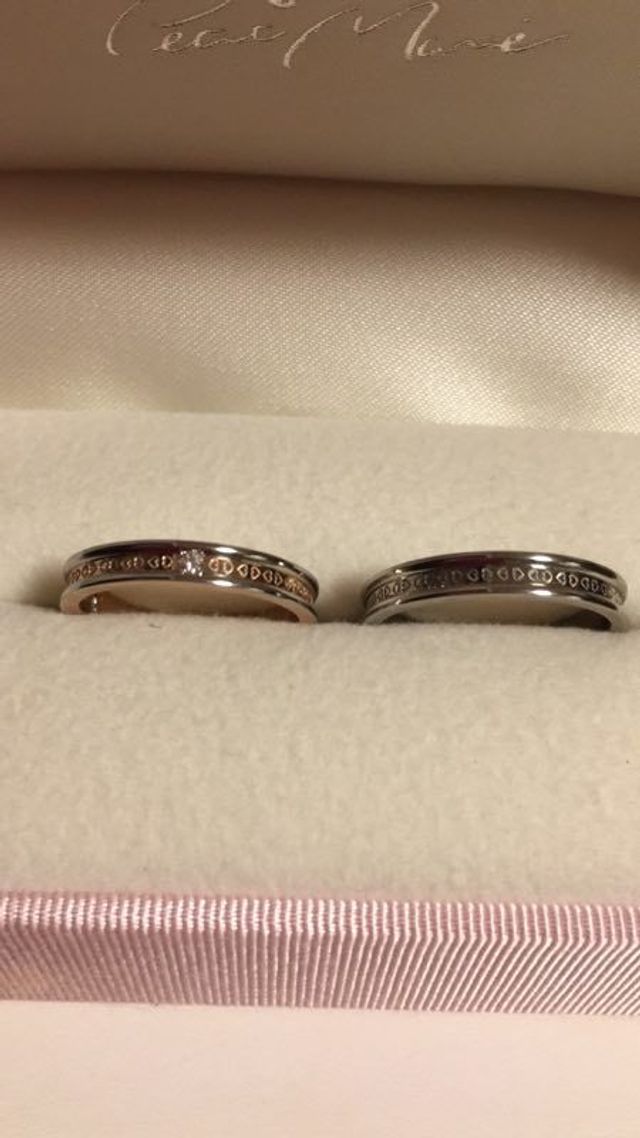 女性の指輪の好みと男性の好みが一致が決め手です。女性用はピンクゴールドの外にダイヤモンドのワンポイント。男性の指輪は、外観がプラチナですので落ち着いていて、女性用より若干シンプルなのが良かったので決めました。