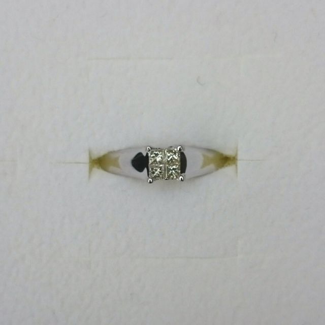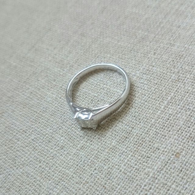滑らかに隆起したヘッドのデザインと四つ置かれた石のドットのようなデザインが気に入って購入しました。あまりごてごてとしたものは好きでは無く、かといってあまり地味すぎるのは婚約指輪としては寂しい通っていたので、ぴったりのものが見つかりました。