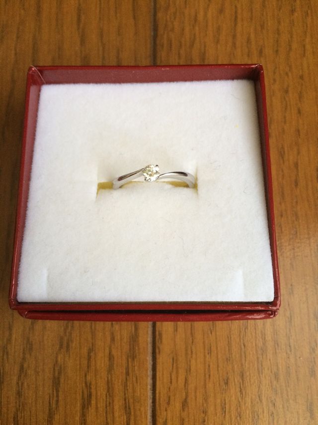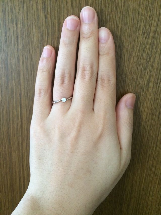 シンプルな一つ石なのに、輝きがとても素晴らしかったので決めました。デザインがまっすぐな形ではなく、少しひねっているので、指が細く見えやすいのも気に入りました。どんな場面にも合いそうだし、飽きにくそうな所もポイントです。
